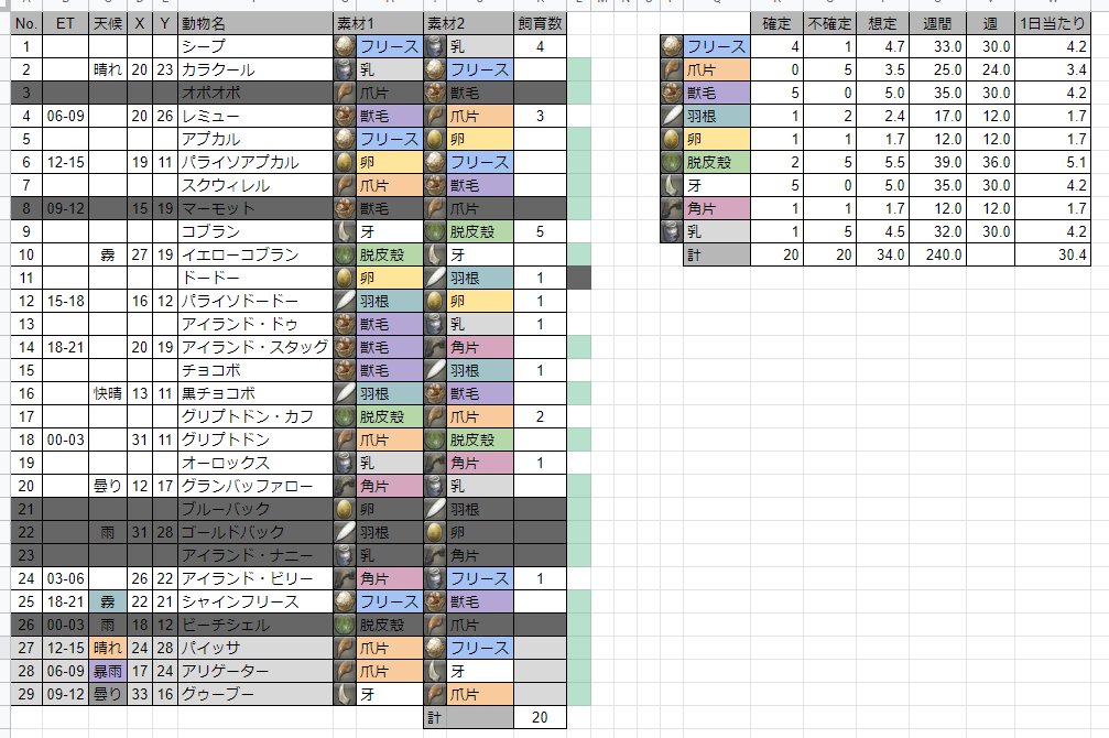 アイランド・ドゥ2 シャインフリース3 黒チョコボ1 グリプトドン1